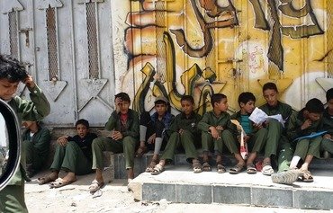 أجرى عدد كبير من طلاب المرحلة الأساسية والثانوية الذين نزحت عائلاتهم جراء الحرب، امتحانات نهاية السنة في صنعاء.